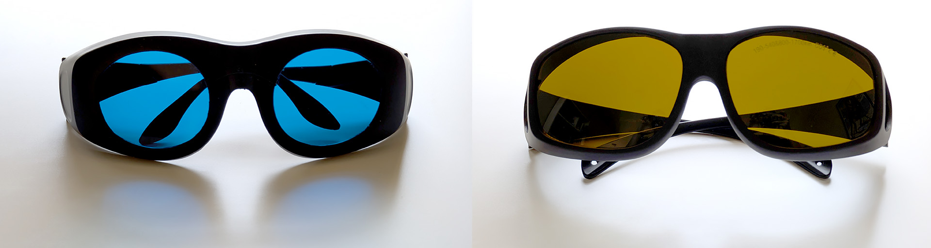 Laser eye protection is rated by “optical density” (OD). The higher the OD number, the less light is transmitted: