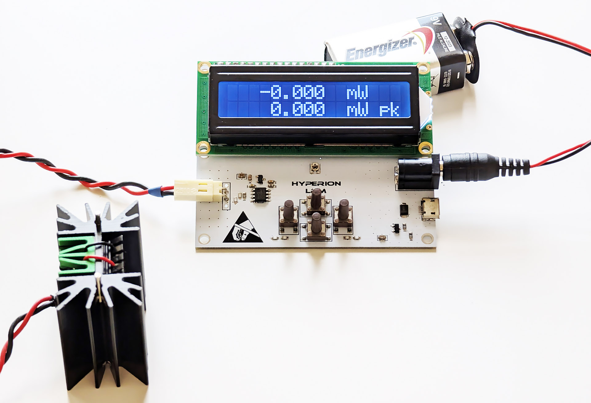 Another device which came in handy from a safety perspective was a laser power meter. With cheap laser diodes (like the ones used in this project), it is common that the specifications of the device you purchase do not match what is claimed. The output power can differ, and the laser diode may not have proper filtering to block infrared radiation (an invisible danger for human eyes). A laser power meter (combined with appropriate filters) can quantify both of these things. Unfortunately, they are expensive devices. Luckily, an enterprising member of the Laser Pointer Forums has developed the Hyperion laser power meter (LPM).