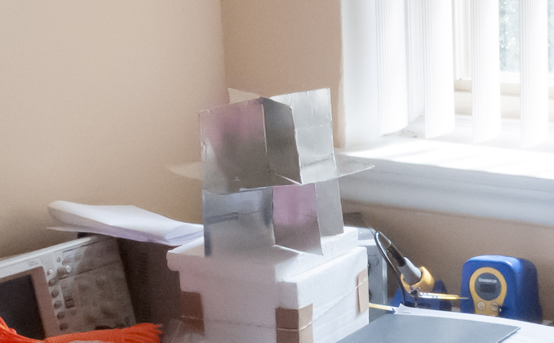 A lightweight radar reflector can be easily made using cardboard and foil tape.