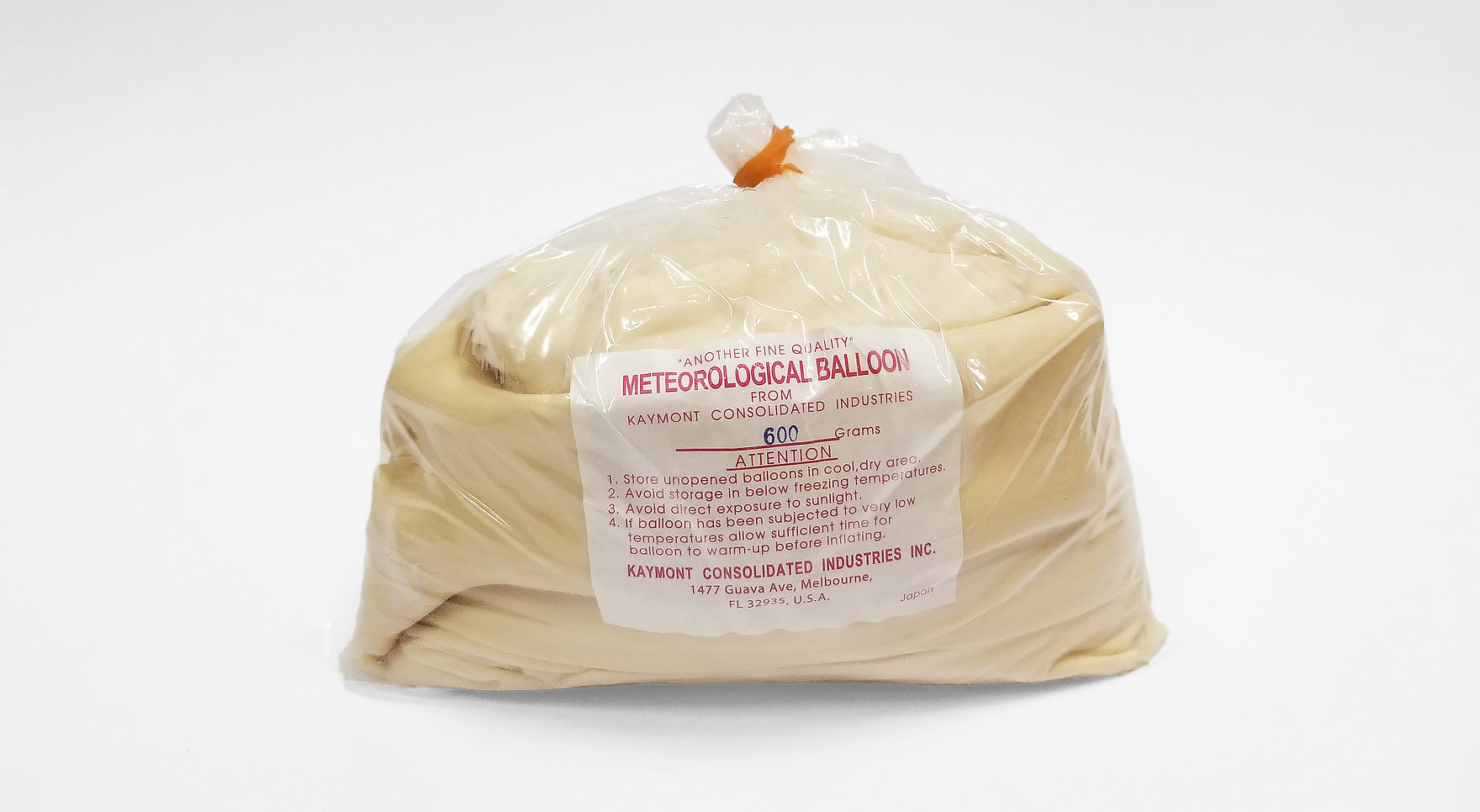 We are already at 624.32g, and still need to add a parachute which could be up to 100g. The standard weather balloon used for a payload of 1-2lbs is the Kaymont HAB-600: