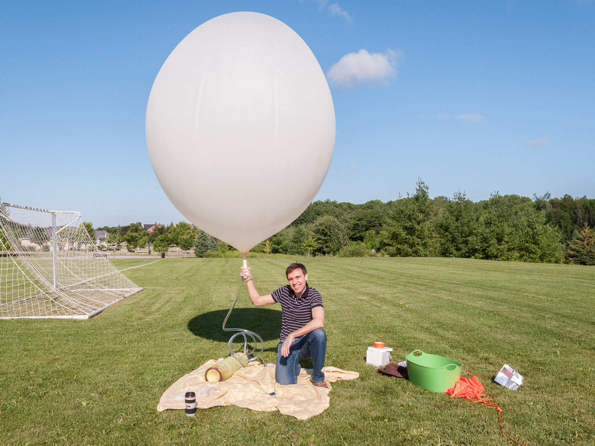 How it ended up in the backyard was a fun story: some kids saw the balloon coming in for a landing in a nearby forest, and chased it down on their ATVs. They took it home, tore it apart, and started looking at the photos, thinking it may be of military origin. They were disappointed to learn the truth.