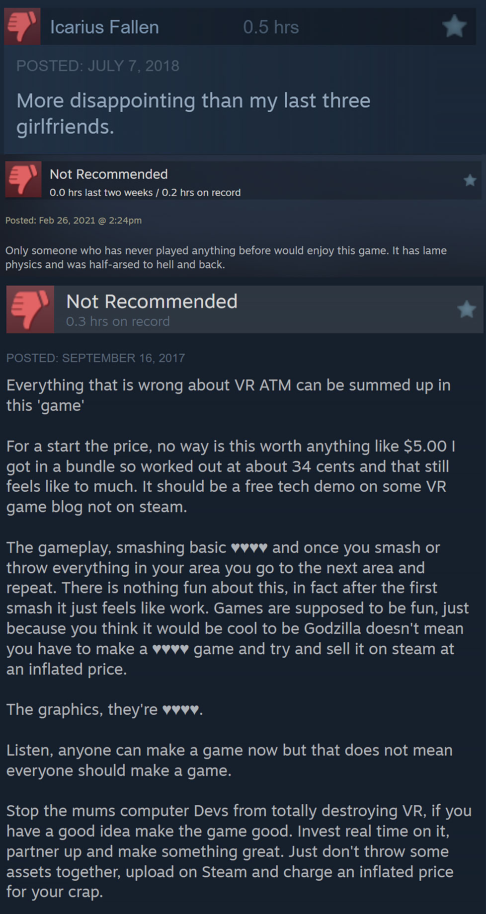 I scoured the internet, but nobody had created a VR experience where you could play as a giant monster and level a city to the ground.